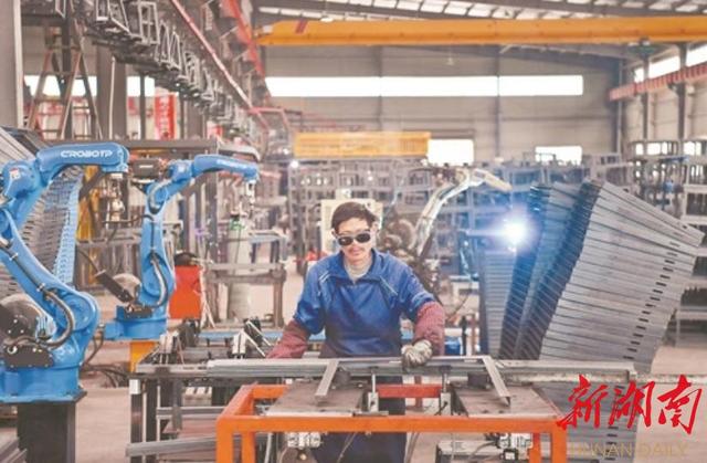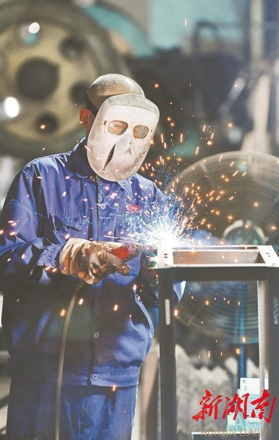 (11月1日,双峰县湖南好运来机电设备有限公司,工人正在车间工作。 童迪 摄。)