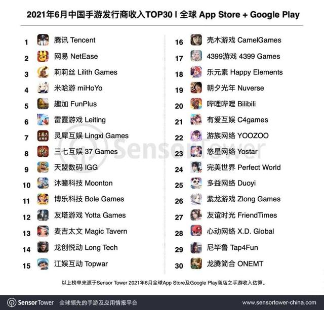 其中,入榜的《摩尔庄园》发行商雷霆游戏6月收入环比激增143%,达到去年同期的12倍,首次登上中国手游发行商收入榜第6名。