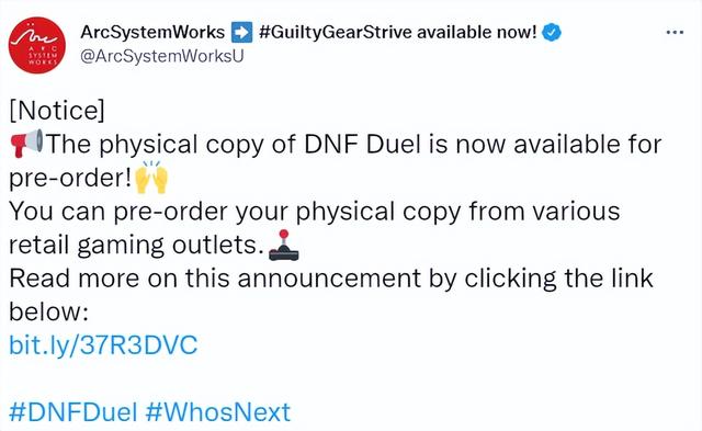 由亚克系统(Arc System Works)使用虚幻引擎开发的,著名网游IP《地下城与勇士》所改编的格斗游戏《地下城与勇士:决斗(DNF Duel)》将于今年6月发售,官方日前在推特发文宣布开启游戏PS5、PS4版本预购,目前本作实体版在亚马逊售价49.99美元。