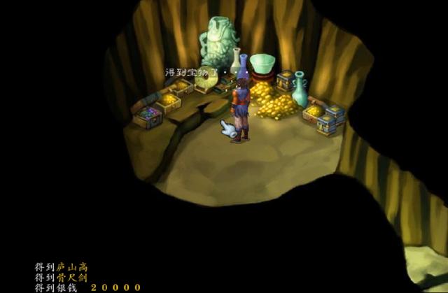 在这里可以拿到名画:庐山高,以及骨尺剑和20000文。看着宝藏这么大一堆,但时能拿的东西非常少。而且出门之后还会遭遇东厂的袭击,必须打赢之后才能将宝贝带走。