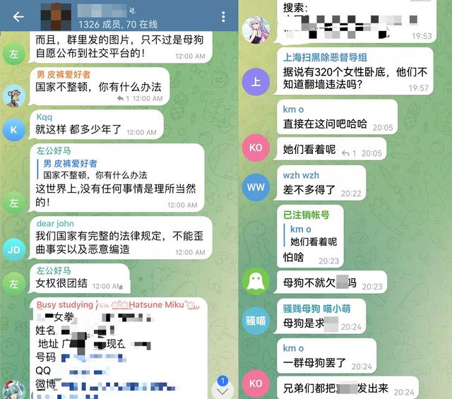 此外,她们的姓名、学校或工作单位、手机号码,甚至身份证信息也被扒出,公开在群里,这可能给她们带来更多性骚扰和伤害。