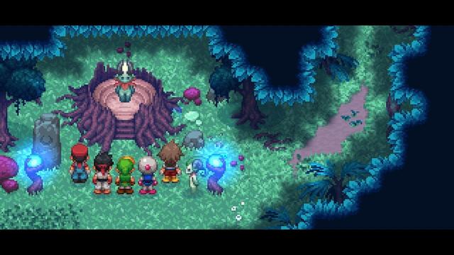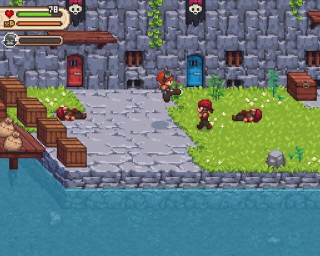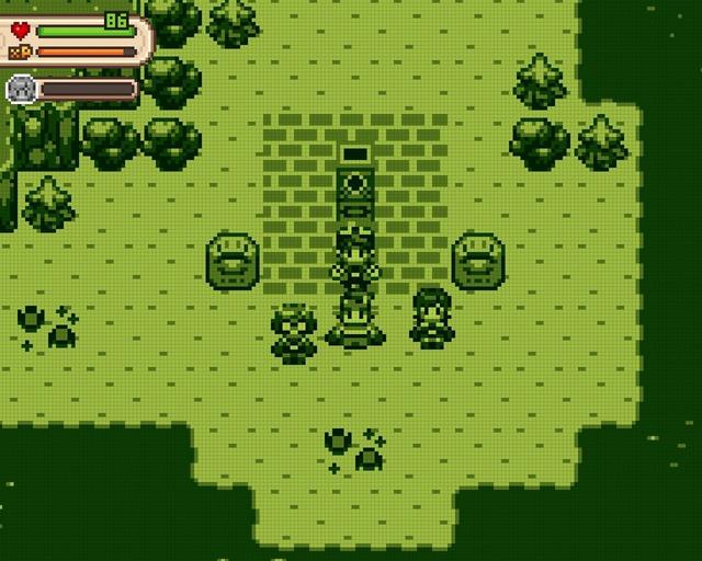 而且除了画面上带来的时代感,游戏的玩法中还有大量极富时代感的“彩蛋致敬”。像是砍草或者杀怪会掉红心,就是对《塞尔达传说》的致敬。又像是回合制战斗的部分,完全就是对《最终幻想》初代的复刻。