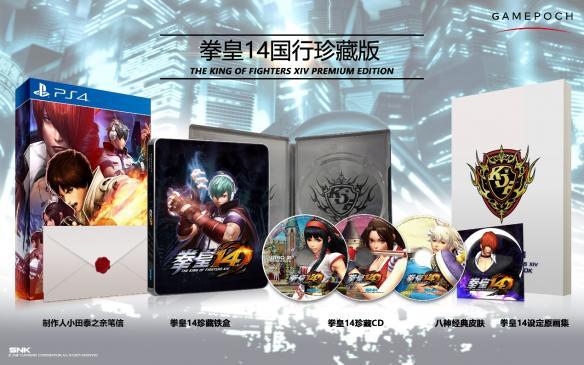 本次,《拳皇14》推出了多国多版,以国行为例,目前推出了普通光碟盘,数字版,电子兑换码版以及珍藏版四个版本。与以往其他游戏的“多个版本,一套内容”、或者只是额外附加一些小赠品的模式不同,在不同的版本中,《拳皇14》国行版都加入了不同的内容。
