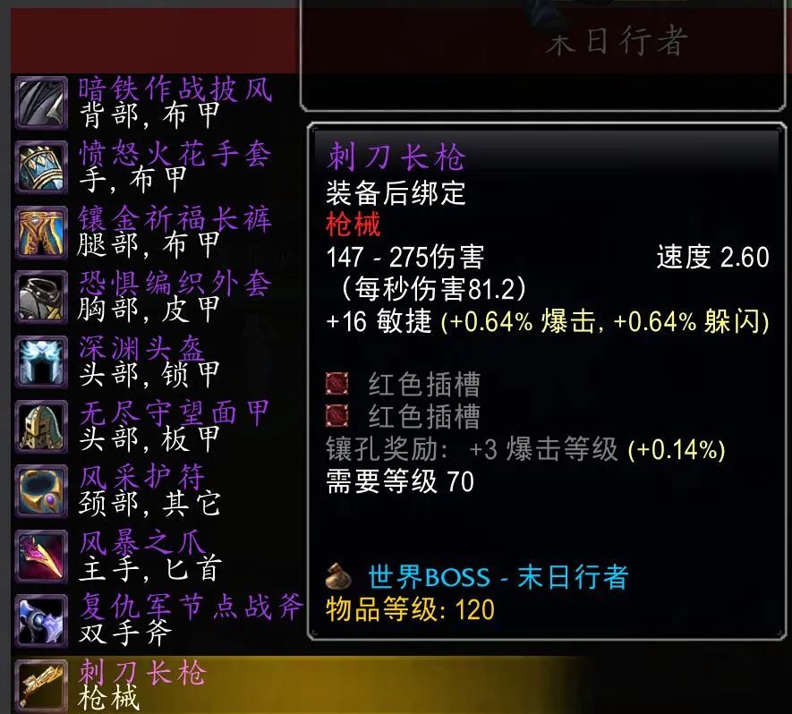 刚开服世界BOSS尚未刷新,不过数据库显示TBC两个世界BOSS掉落装备已经改为装绑。