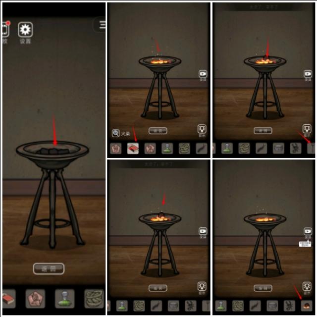 将得到的面具镶嵌到火炉上烟火游戏拿到蝎子,捡起火炉里面的火炭