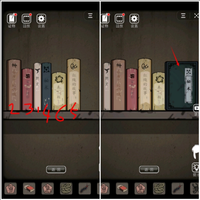 拿到线索,回到床边的书架,重新摆放书的位置得到秘术