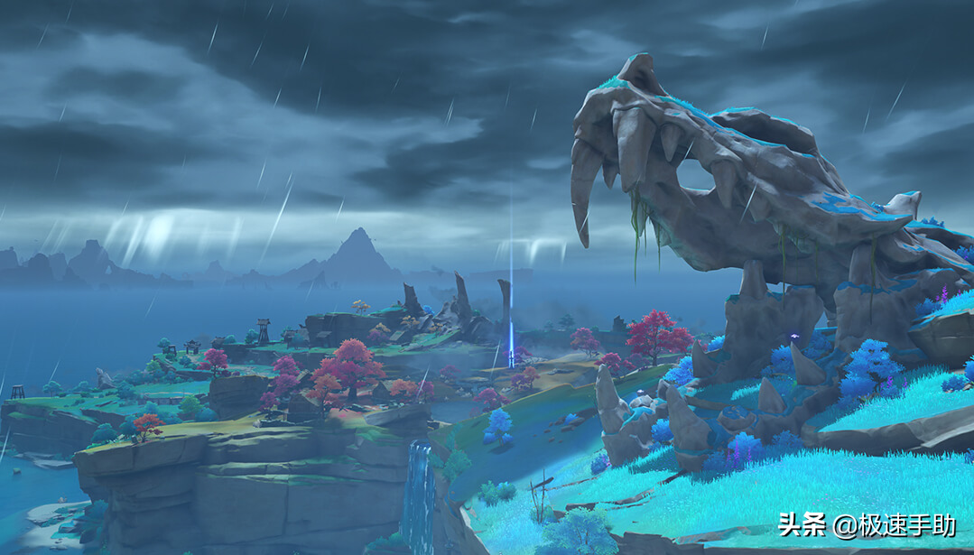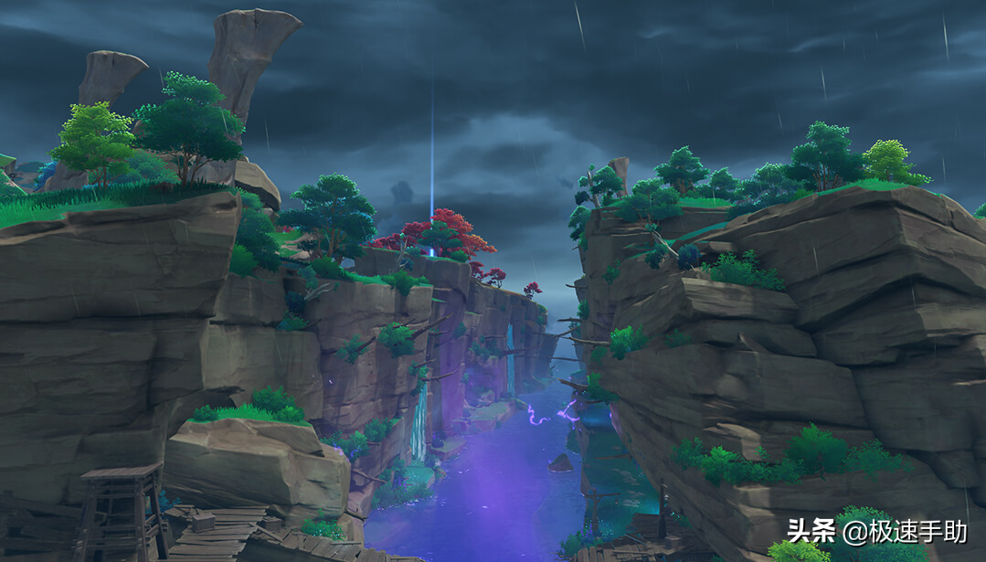 首先,前往影向山底部的裂口-解除洞口封印。与花散里对话,接着跳进底部,降落至洞口的时候记得拿雷神瞳