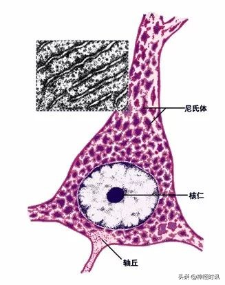 (1)尼氏体(又称嗜染质):位于神经元胞体或树突内的嗜碱性团块或颗粒,具有合成蛋白质的功能。