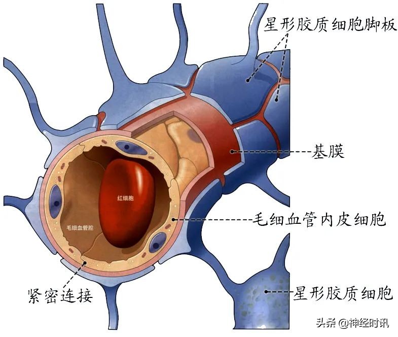 1.星形胶质细胞:在神经胶质细胞中体积最大、数量最多,分为原浆性星形胶质细胞和纤维性星形胶质细胞。细胞呈星形,突起的末端膨大,称脚板,附着在毛细血管壁上,参与构成血-脑屏障,阻止血液中某此物质进入脑组织,但能选择性让营养和代谢产物通过。