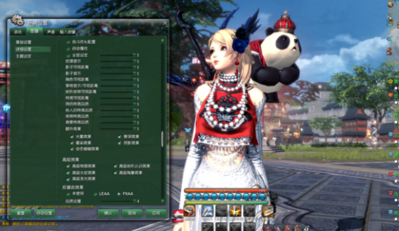 FXAA:开。这是快速后处理技术,提高质量的同时对性能影响小,比剑灵本身优化好太多。缺点是优化后文字有可能柔化不清晰,关掉后可解决,但人物和衣服的边缘明显锯齿化!