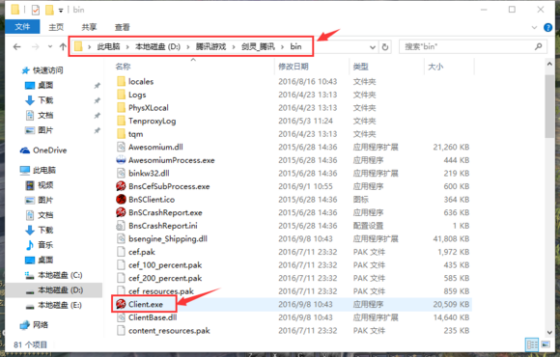2、程序点右面的添加,选剑灵的运行文件client.exe,在剑灵游戏目录的bin目录下。优化的就是它。