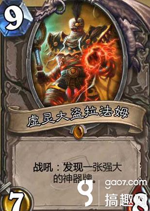 炉石传说虚灵大盗拉法姆:战吼,发现一张强大的神器牌。