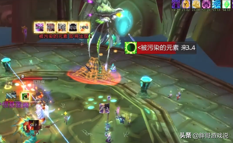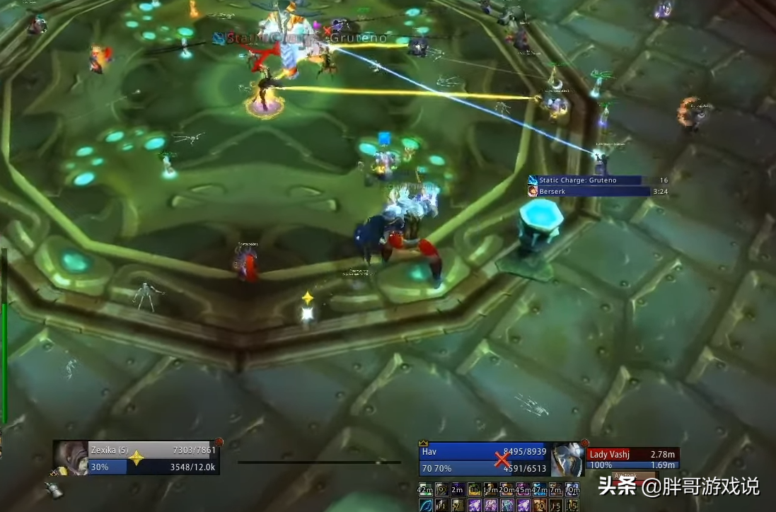 瓦斯琪一共有三个阶段,当血量达到70%的时候会进入P2阶段。现阶段很多公会开荒都会让猎人误导坦克开怪,然后坦克把瓦斯琪拉到台阶下面,目的就是为了让瓦斯琪在转阶段回中场的时候多打一些输出。
