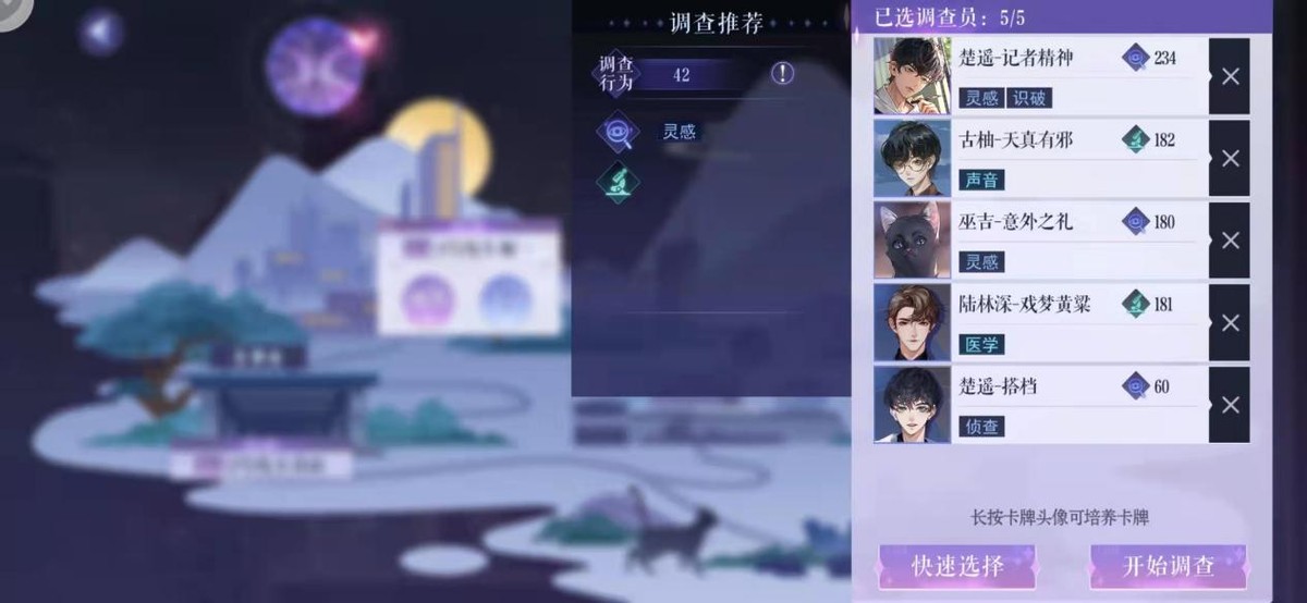 举个例子,像是在引子狐狸和华表事件中,陈欣作为委托人也是给了我们众多的提示,不过提示半真半假,在我们调查旧址时发现了种种发现线索,尤其是看到和陈启铭相关的消息时,陈欣的情绪也会变得不安起来,而这时候需要派出具有安抚作用的调查员,其中温柔的风泽就是最佳选择,即使你选择其它的高等级卡牌还是会探索失败。从这一点就能够看出,制作组在线索获取的逻辑性上把握得很好,并不是单纯看的卡牌等级,而是“对症下药”。