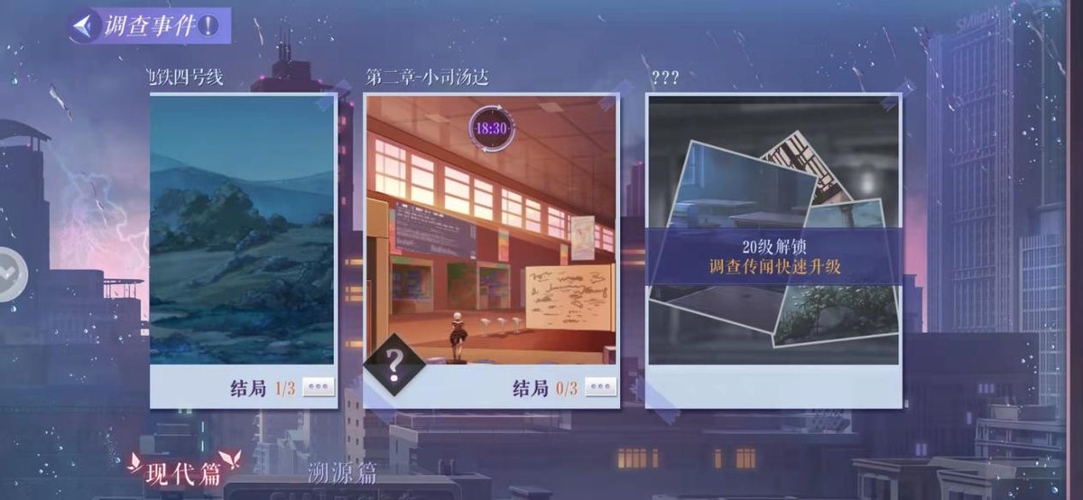 此外,《黑猫奇闻社》的剧情分为现代篇和溯源篇两个篇幅,而在这两个篇幅中又设计了不少分支和结局,也就是说玩家们选择的不同,对结局也是有着一定的影响,甚至最终会得到不同的游戏结局。不过为了让玩家们能够更好梳理自己的头绪,每个章节内都有着剧情发展脉络展示图,灰色是没有探寻到的隐藏剧情、橙色代表有分支会影响结局,一目了然的设定让玩家们可以更好的了解到自己的探索进度。