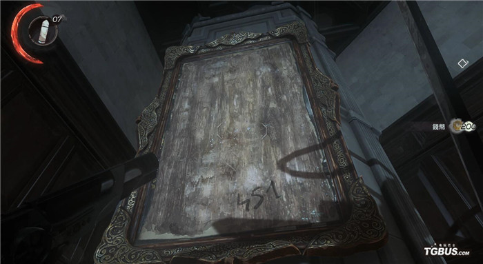 进入后往左边方向走来到一件小屋里,取下墙上的画作可以看到451这三个数字(注意里面有一个低级士兵)。