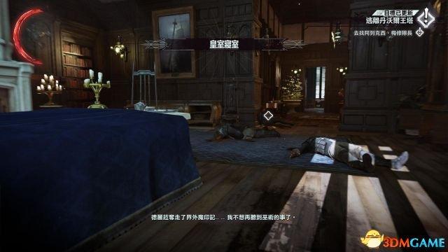 选择左侧中间扇窗,打开它翻出户外,然后往前方走去,这里有个打开的窗户可以内进到皇室寝室旁边的客厅,在这里会见到阿列克西,垂死的她还挂念着艾米丽,并且表示她早已安排了一个船长在码头等候。