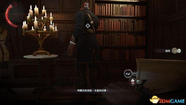 往图书馆走去,在左侧的书架前可以掐晕一名叛兵。