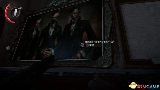 step6.刚走出藏身处,在走廊右侧有一幅画作——《库斯提斯、摩根与必要条件之子》(画作1/2)。