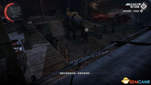 step9.从巷子外出落到码头街道右侧的下方通道处,当接近一个哨岗时潜伏在哨岗内,在这里可以暗杀掉两名叛兵。