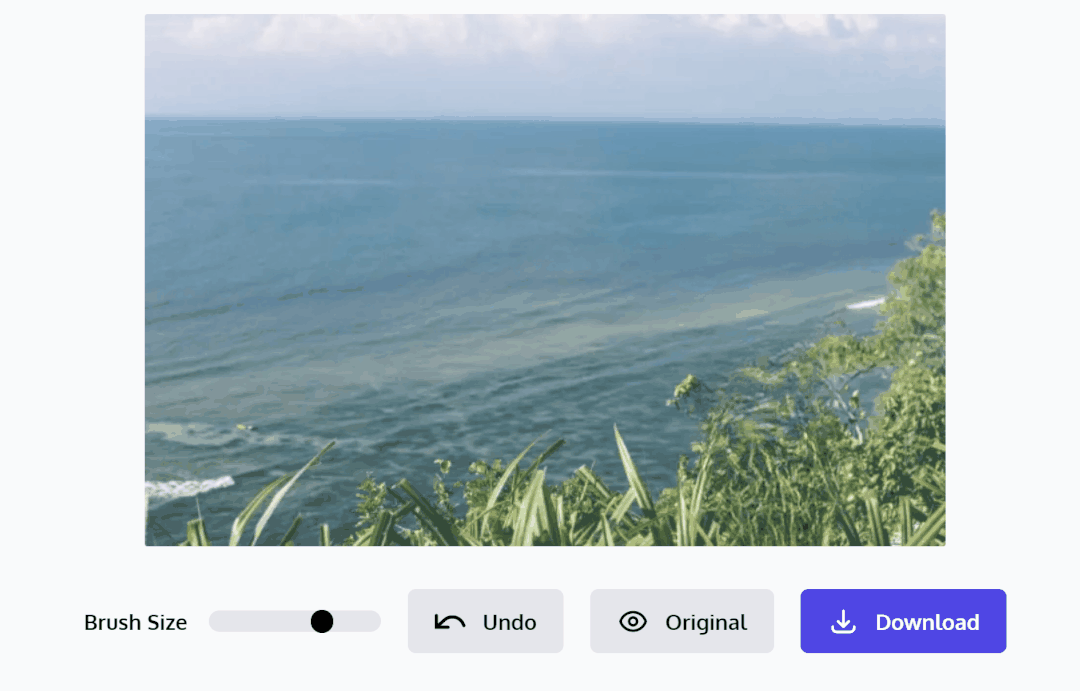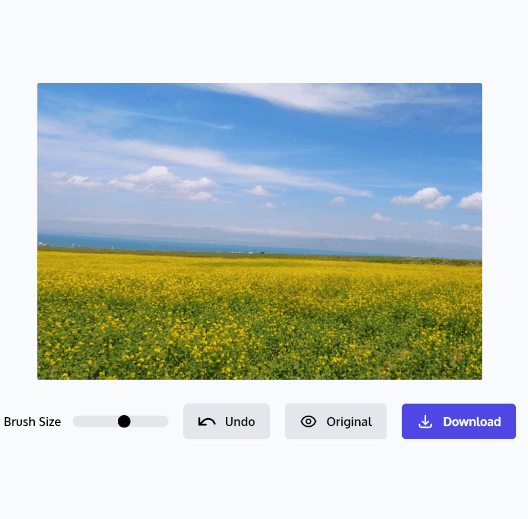 上传图片之后,涂抹选中想要删除的物体,松手就会自己处理,选错了也不用担心,下面有撤退回上一步的操作,可以看到对于这种物体不多,周围干净的图片,还是非常轻松的。