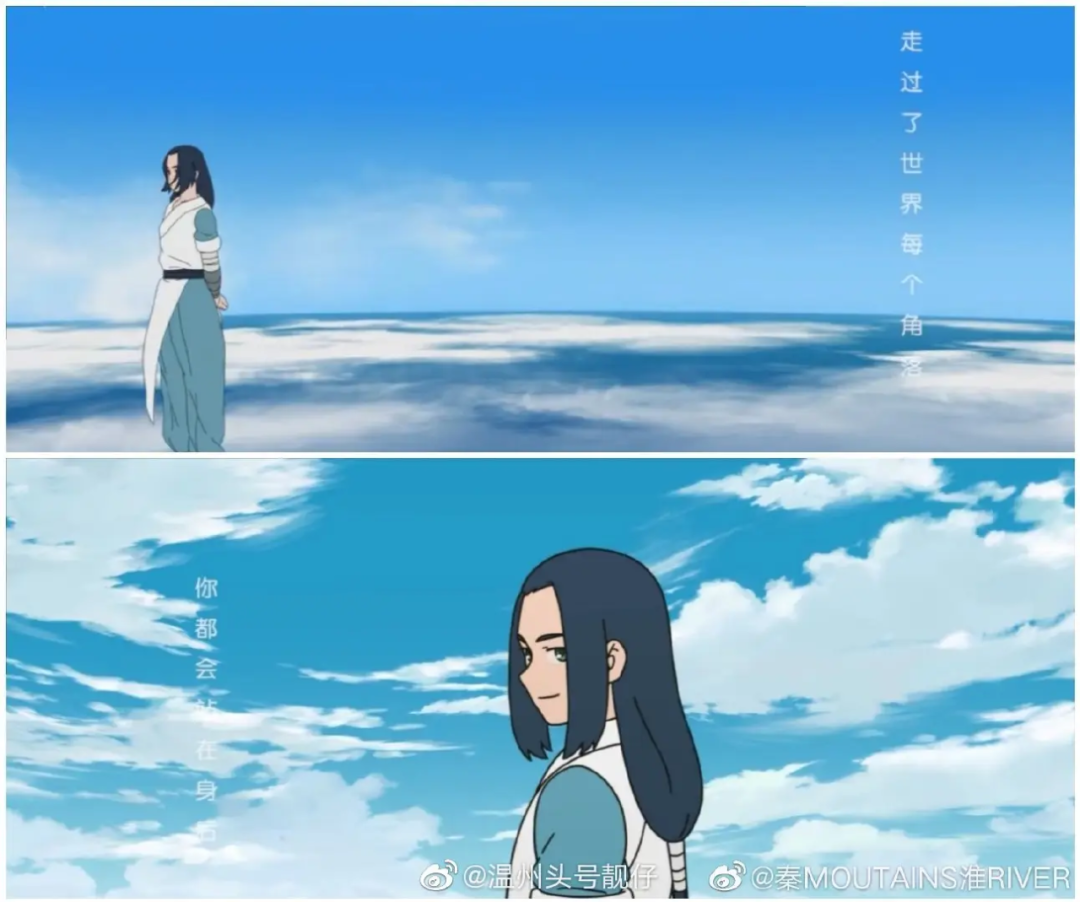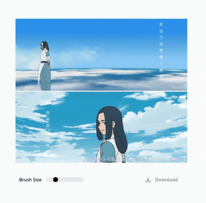 我们再找一张难度高一点的,下面这张图有云层与水印信息,而且蓝天与漫画人物的颜色比较接近,来看看效果。