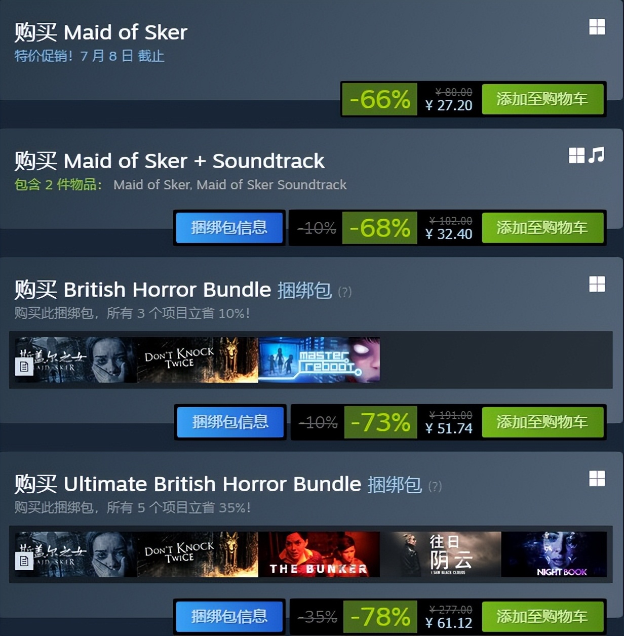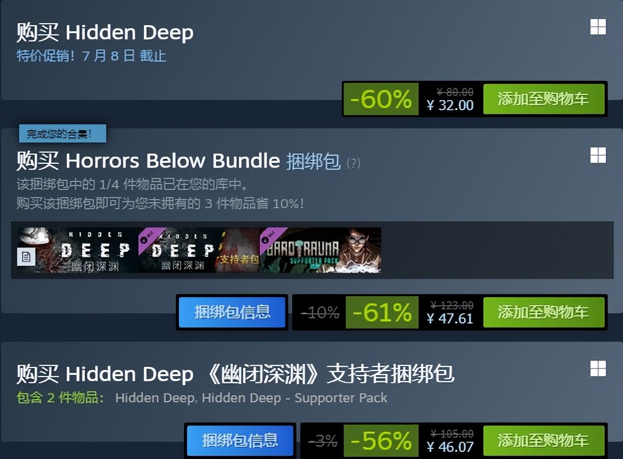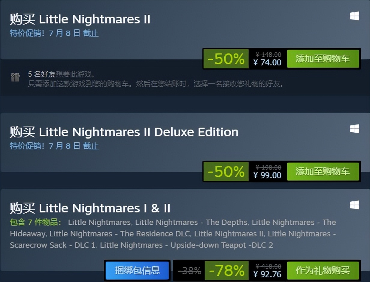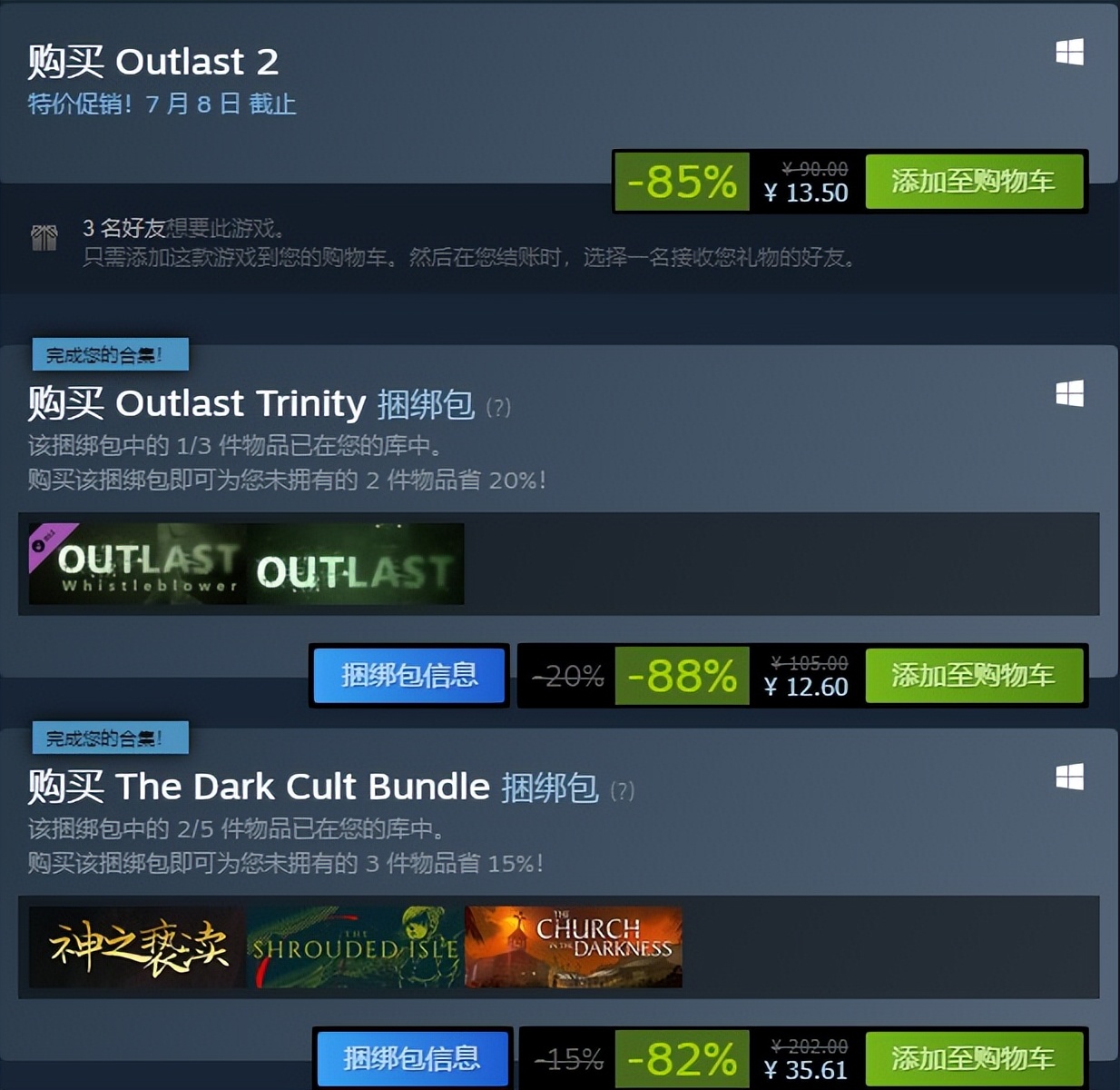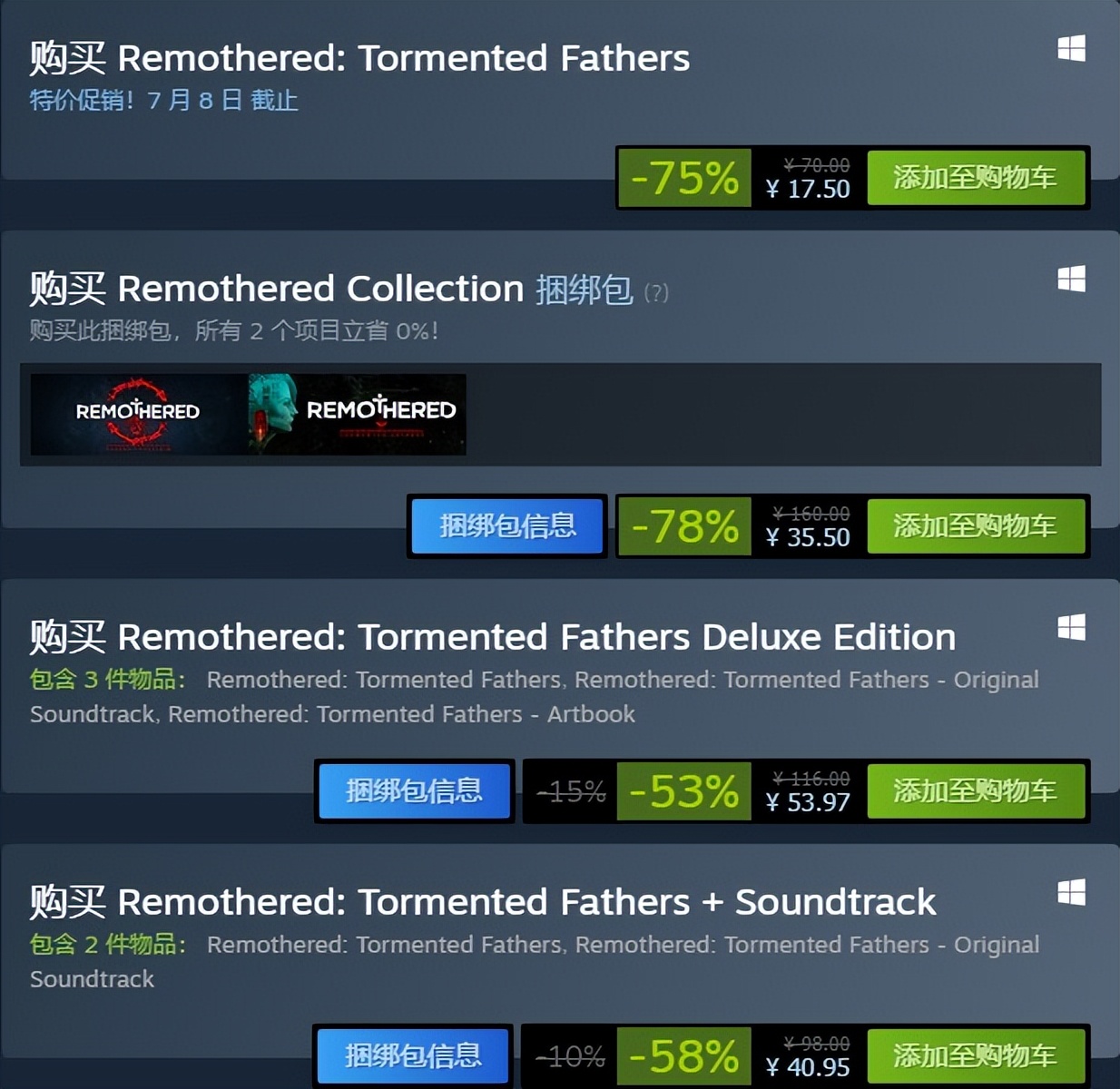 捆绑包-78%,折扣价92.76元,这个捆绑包极力推荐给没有玩过这个系列的等等党们。