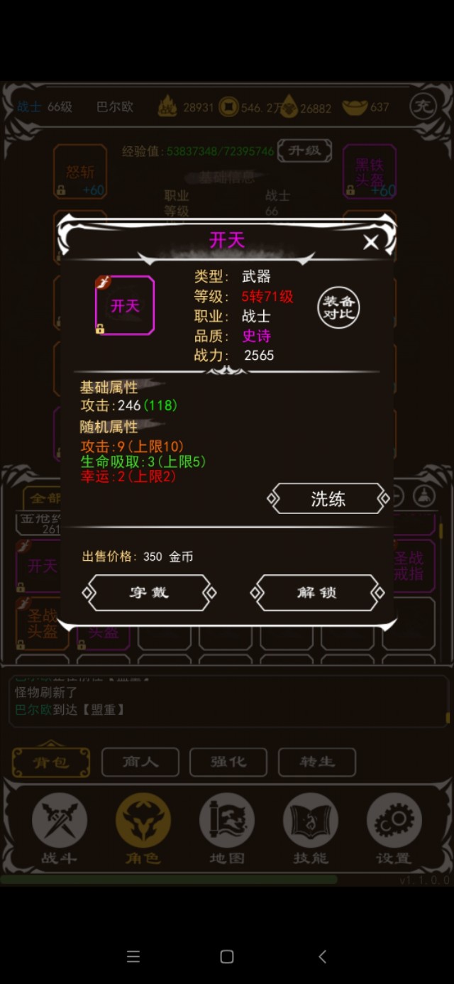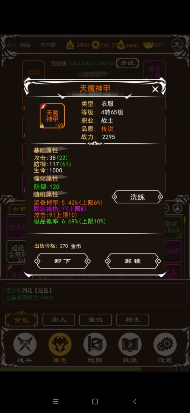 关于属性,防御属性比攻击属性战斗力加的高,幸运值大幅提高战斗力,开图必备,吸血是最垃圾的属性,没有之一,攻速不加战斗力,但是可以提高经验效率。经验值最高的地图是祖玛教主那里,所以到了64级可以攒攒经验再升级,我升了65就后悔了,祖玛降经验(人比怪高五级以上开始降经验),后面升级变慢了很多,我在祖玛,最高可以到3000多点每秒