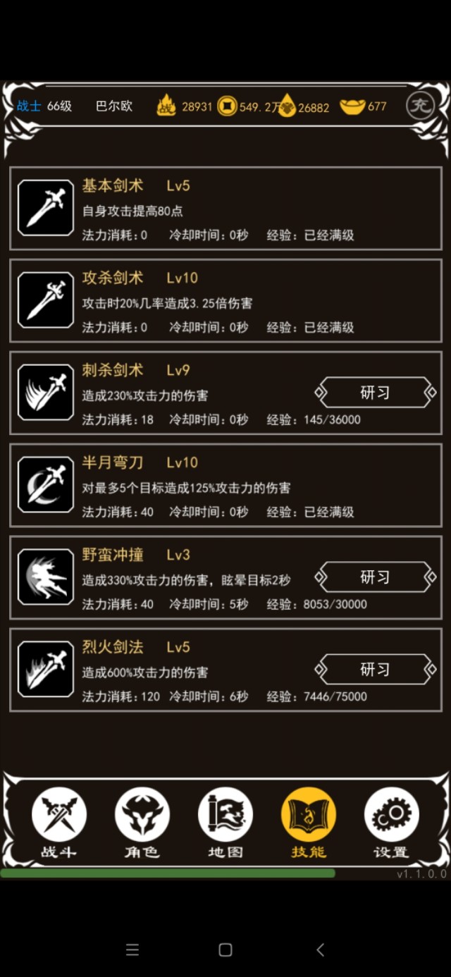 先说说技能,基本剑法满级5级,直接升满,然后战士两大神技,攻杀剑术和半月弯刀,这两个技能优先满级,攻杀剑术是被动技能,你所有的攻击中,包括烈火和半月,都可以启动,我最高的时候,一刀烈火40000多伤害,没多打0,就是四万伤害,半月每个攻击目标都是可以出攻杀的,所以半月很厉害,升级神技。