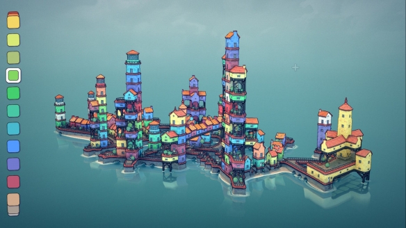 玩家最终可能会得到一座教堂,或者一座漂浮在螺旋桨上的小镇,各式各样。颜色和声音效果营造出迷人的放松感,而当移动建筑物时,成群的鸟儿会飞翔。在它上面投入的时间会比你最初想象的更多。不管怎样,它都是一款可爱、悠闲的游戏,非常值得一试。