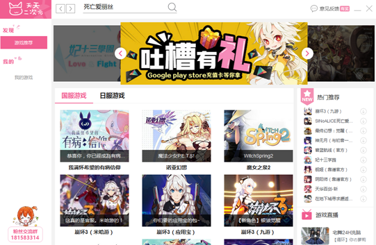 在人力与技术的支持下,天天二次元解决了玩家在使用安卓模拟器的过程中,搜索不到游戏、无法本地安以及安装游戏不兼容等问题。目前天天二次元软件正处于内测阶段,同时上线“吐槽有礼”活动,欢迎玩家积极参与产品建议,更有Google play store充值卡豪礼等你来拿,活动链接:http://2cy.ttmnq.com/Act/2017/Spitslot/。