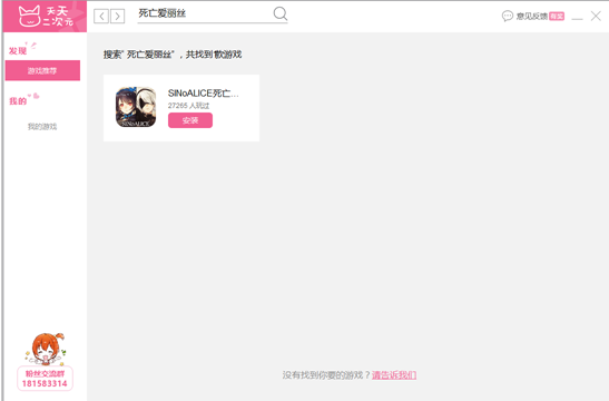 1、打开天天二次元,以《死亡爱丽丝》日服为例,搜索“死亡爱丽丝”;