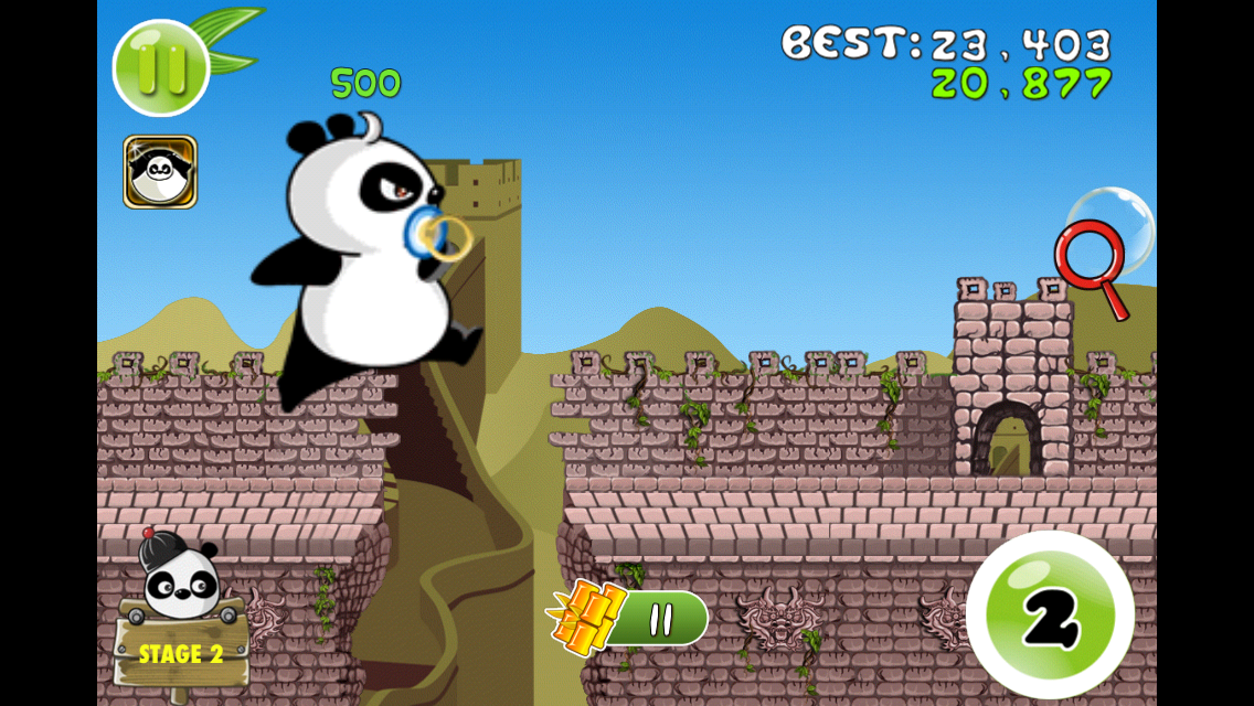 《熊猫屁王(MW Bamboo)》的游戏画面充满了浓郁的民族风格,游戏的背景选择了我们最熟悉的八达岭长城,看上去非常有亲和力,只不过这长城看起来非常的残破不堪,杂草在破旧的墙缝中疯狂的生长,仿佛很多年没有修缮的样子。想必潘玮柏一定没有真正去过中国的长城,如果亲自考察一番的话墙上一定会画上一些“到此一游”的涂鸦。
