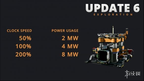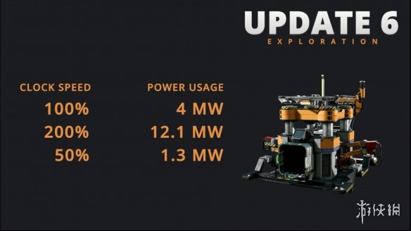 此外,制作组还将对机器超频进行重新调整,功率需求在未来将会变为线性形式,也就是说,一台超频至200%的机器只需要使用两倍的功率,降频亦然。这意味着他们正在考虑加强超频、削弱降频。这可以让玩家更容易通过超频来改进工厂,对于游戏后期的玩家来说,也能建造更大、更高效的工厂。不过目前,制作组还不完全确定是否会做出这种改变,需要再听一听玩家社区的反馈意见。