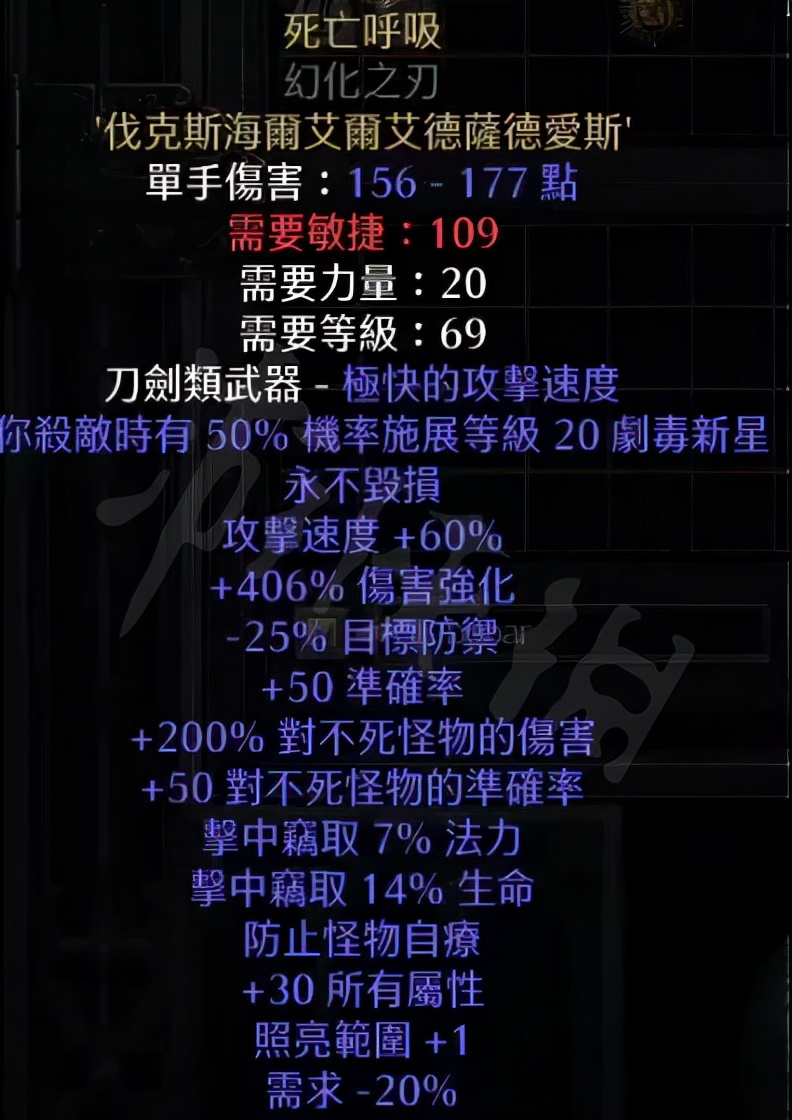 死亡呼吸用幻化之刃制作可就亏死了,幻化之刃,底材自带无法破坏,用来制作死亡呼吸,你是要他的攻速吗?