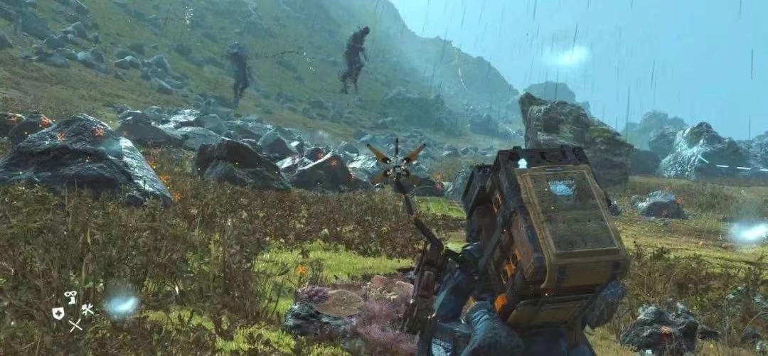 当然,送快递的路上也不是一路顺风的,小岛秀夫这个糟老头子是绝对不会让你轻轻松松地把快递送到目的地的。物品重量只是最简单的一个影响因素,真正要思考的是如何尽量减少路上的BT和时间雨的影响,还有那一群抢人东西的小黄人。当遇到BT时,是莽冲过去,是静悄悄摸过去,还是揍BT,都要看自己的选择。文哆芬比较头铁,是直接冲过去的。(只要跑得快,就没有BT能够追上我!当然也被抓了很多次······然后就,敢抓老子?揍他丫的!)。