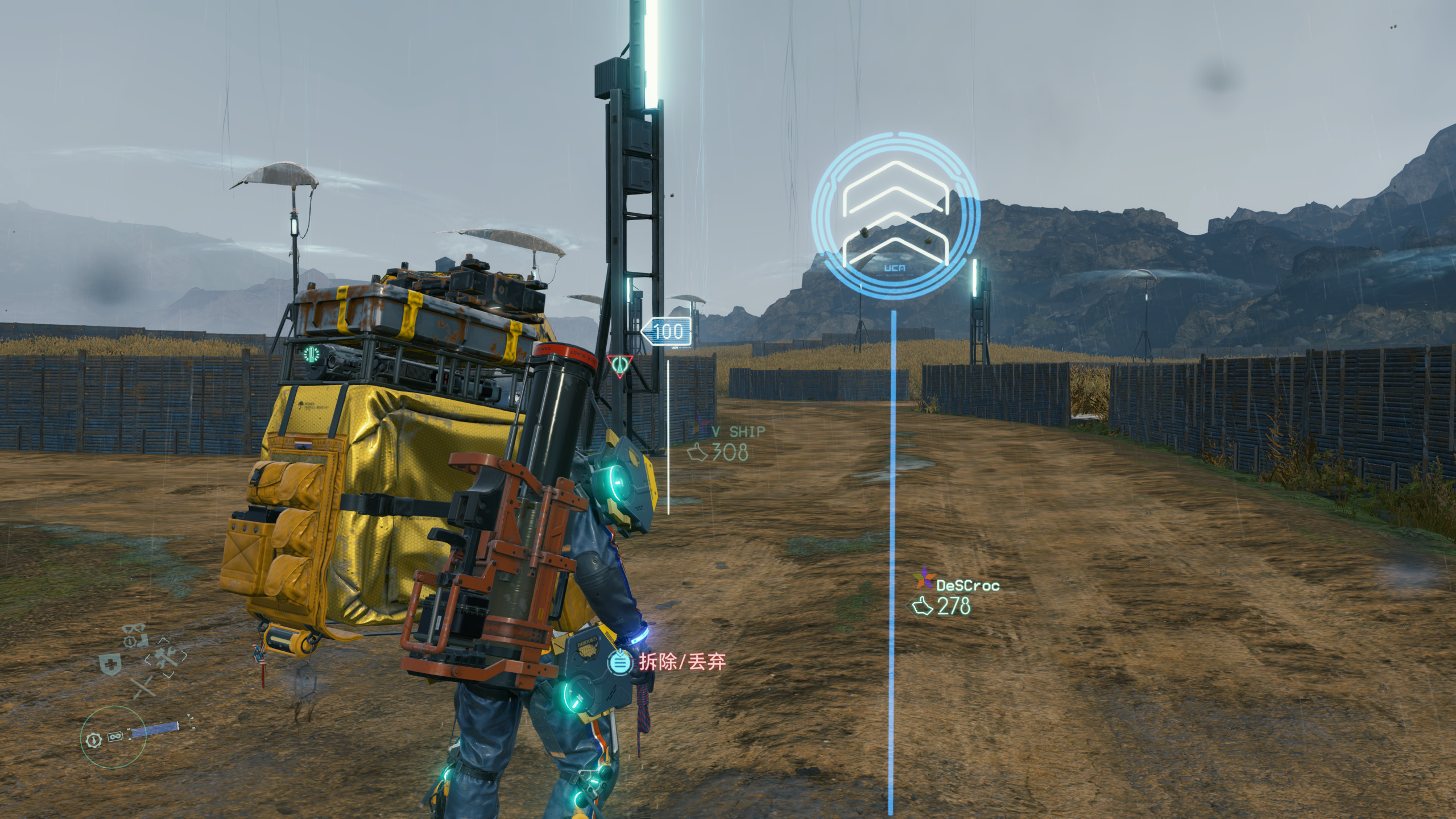 这是一种很奇妙的游戏体验,“送快递”本就是一场末世下的孤独之旅,却因为有其他玩家的帮助而变得异彩纷呈,犹然记得第一次在东部地区穿越BT区域,时间雨已经快将货物外壳损坏到极点,此时看到一个山洞下有着在此躲避时间雨的全息投影牌子,在喷完货物修复剂后,突然一种绝处逢生的幸运感,我给这个牌子点了许多个赞,在之后的游戏过程更是遇见了很多次这种情况。