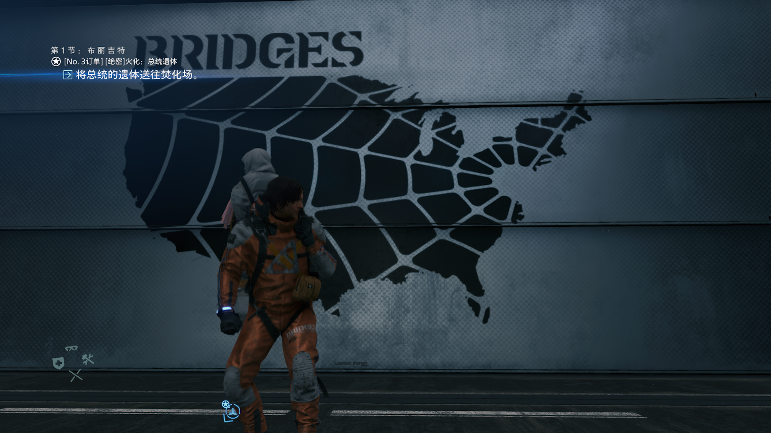 这是我第一次接触小岛秀夫的游戏,虽然说游戏场景重复化较高,但是其对于游戏细节的打磨程度实在是高到了一定的地步,归功于动作捕捉技术的强大,主人公山姆的表情细节非常逼真,尤其是在私人套间中,玩家以一个摄像头的视角盯着山姆看,山姆会做出不同的表情动作反应;在洗脸盆的镜子前,根据玩家不同的按键,会做出不同的鬼脸,还会收获BB的点赞好感度,这种独特的小设计为游戏添加了不少新意。