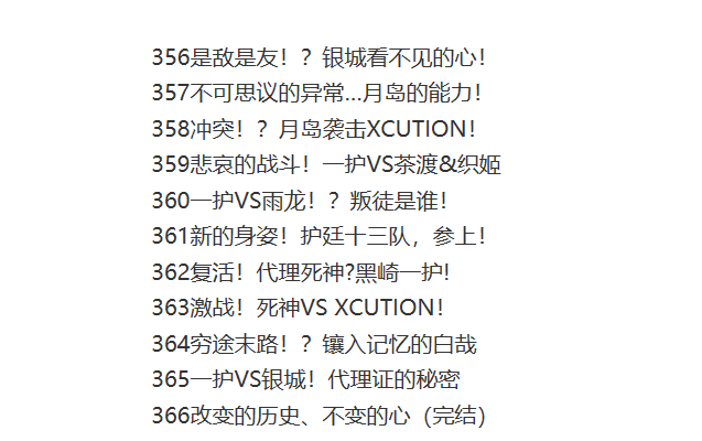 死神TV版已经完结了,三百多集。嫌麻烦的小伙伴可以直接看主线哦!
