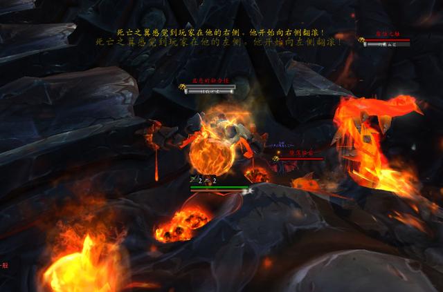 在我们看到聊天框中出现”死亡之翼向左侧翻滚!“通报后,就可以到右上的坑洞中站着了,