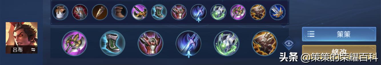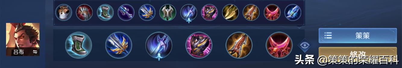当己方阵容伤害足够但缺乏前排的情况下,吕布就可选择边惩紫刀这套出装来为团队承担与吸收主要伤害;在最后一件的装备选择上,吕布可根据情况搭配防装不祥征兆,或补破军提升自身伤害。