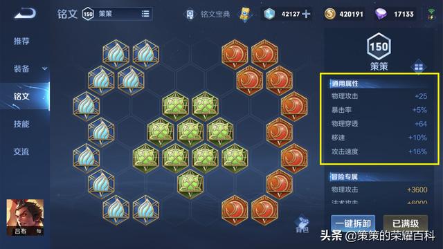 倘若双方所选常规阵容,那现版本吕布胜率最稳定的铭文出装,就是“一刀流”了: