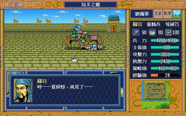关于变换兵种的方法,最初是在一本游戏杂志上看到的,一直记住了,当初玩的时候就让关羽顺利逃脱。后来很多玩家受不了这逃跑的气,从一开始就注重培养关羽、周仓、关平、伊籍等将领,就为了在麦之战中全灭敌方。