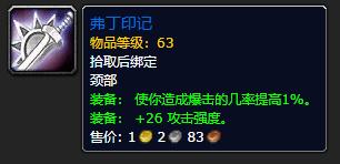 n 弗丁印记:加攻击和爆击。是大多数近战职业的准毕业项链。