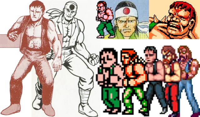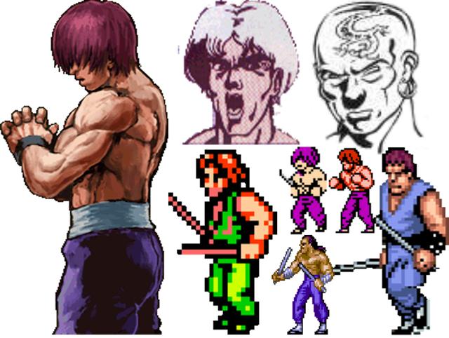陈泰梅在各个版本中的形象。因为在2代中已经宣布死亡,因此后续只能在外传中出现。陈泰梅让人印象最深的形象应该是在FC版本中吧!那个曾经让不少玩家吃亏的绿衣双棍,在一代中出现的形象其实就是《双截龙》格斗版中成福的原型。