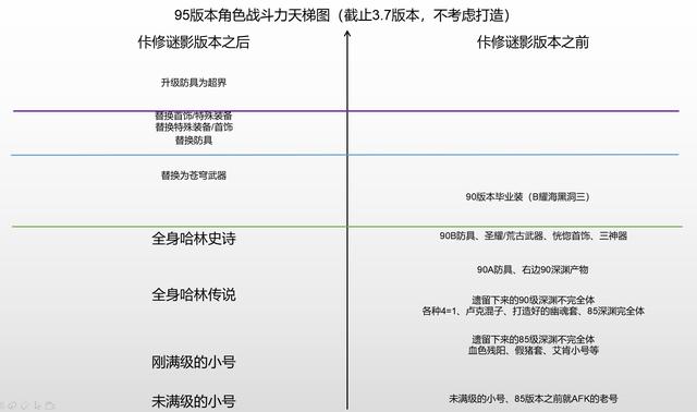 在正文之前,先放一张个人粗略制作的95级版本角色战斗力(并非指TGP自带的战斗力数值)天梯图,情况如下