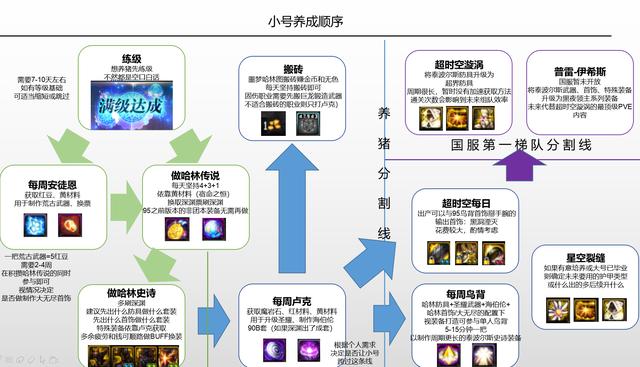 其中,小号的养成需要兼顾搬砖速度&团本表现,不可只取其一。养猪应该按照一定顺序交替进行