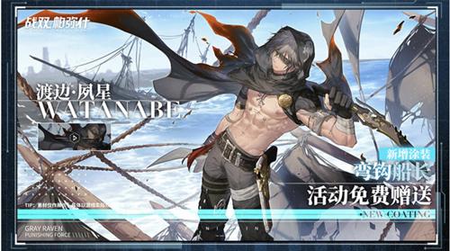 最后一款全新涂装是渡边·夙星专属的【弯钩船长】,置身甲板的他逆风而立,坦然地露出力与美兼备的腹肌。海风扬起黑色披风,可见下摆留有赤炎之色,仿佛刚刚经历完一场守护同伴的鏖战。涂装可以参加相关活动即可免费赠送,想要的玩家可要盯住双宝的后续消息啦。