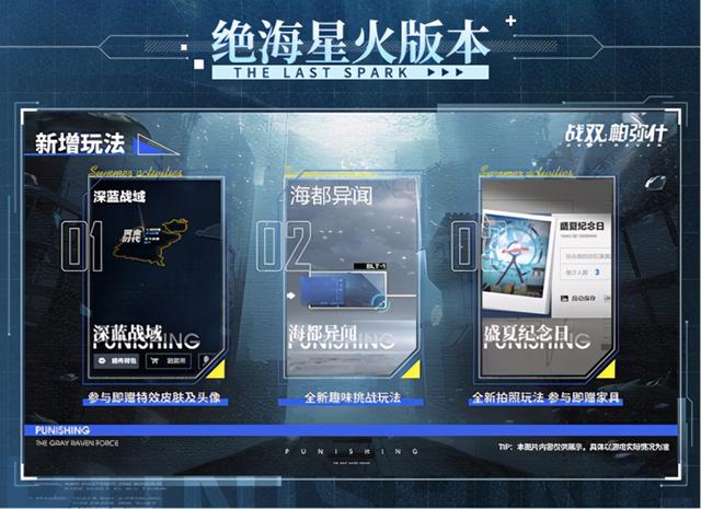 除了以上精彩的内容,战双还准备了深蓝战域、海都奇闻、盛夏纪念日等三大玩法,让你这个夏日再也不空虚无聊!