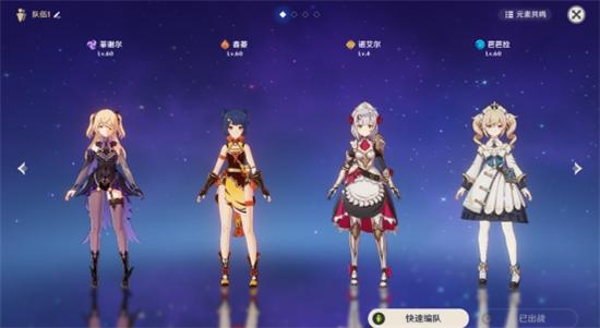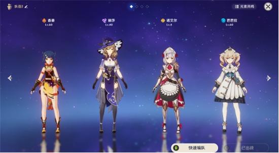 香菱(主C)+丽莎(副C)+女仆(大剑破盾工具人)+芭芭拉(回血工具人)